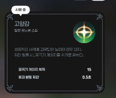 - ‘고양감’ 스킬 발동 제한 시간 0.5초가 스킬 카드에 표기됩니다.